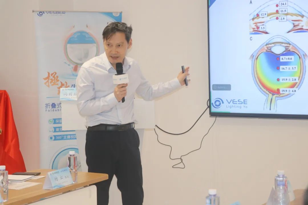 高前应教授分享了眼球空间内腔体积和房水循环。眼球空间内腔体积变化,与眼轴不成比例,导致对眼球功能造成误判。以正常眼球23.5mm为例,眼球空间内腔体积是4.5ml,眼球21.5mm的空间内腔体积是3.3ml,萎缩25%;眼球20.5mm的空间内腔体积是2.7ml,萎缩40%;眼球19mm的空间内腔体积是1.7ml,萎缩62%。眼球25mm的内腔空间体积是5.5ml,膨胀22%;眼球27mm的空间内腔体积是7.0ml,膨胀56%。眼睛有房水循环容积角膜内皮才能够存活,FCVB能重建房水循环容积。注意硅油眼和FCVB的常见陷阱和解决办法:①硅油填充下的眼压和睫状体的关系:眼压低时睫状体功能衰竭,低眼压不能通过补充硅油来恢复正常。②按普通硅油手术经验来推测FCVB填充硅油量。以眼轴23.5mm举例,FCVB植入推荐硅油量少1ml。③硅油下角膜透明是角膜伪透明。④两次硅油填充失败后,仍选择注硅油。⑤硅油填充后,眼球萎缩和角膜病变才考虑FCVB,推荐FCVB最佳植入时间应为硅油填充后1-2个月。⑥FCVB术后补粘弹剂是有必要的:升高眼压,减轻炎症反应;睫状体功能只有在正常眼压下才能恢复。